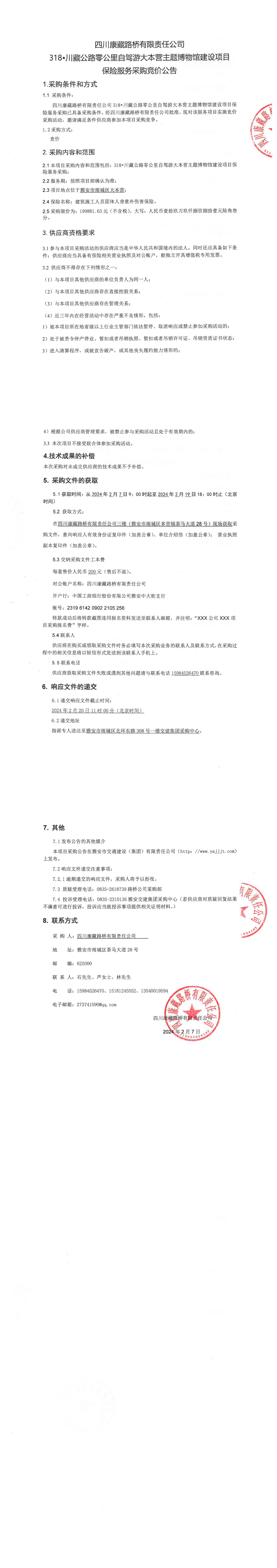 四川康藏路橋有限責任公司318•川藏公路零公里自駕游大本營主題博物館建設(shè)項目保險服務采購公告